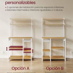 Eleva la funcionalidad y el estilo de tu espacio de cocina con nuestra estantería multifuncional, diseñada pensando en la eficiencia y la seguridad. Este mueble no solo es un complemento perfecto para tu cocina, sino también una solución innovadora para tus necesidades de almacenamiento y carga.