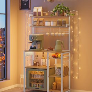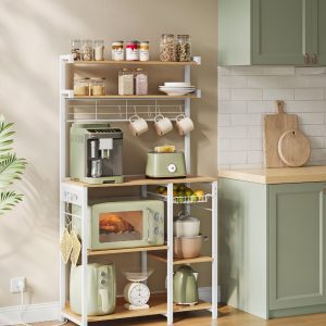Estantería de Cocina Multifuncional con Estación de Carga Integrada: Combina Conveniencia, Ajustabilidad y Estilo