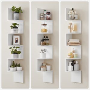 Forma única en zigzag y estantes curvados, superficie estética y sin bordes para los niños; estante abierto para facilitar tu recogida, es ideal para la sala de estar, el estudio y dormitorio.
