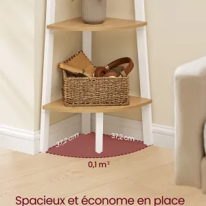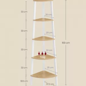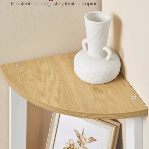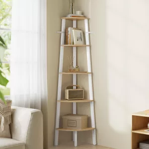 Optimización del Espacio: Con un tamaño compacto de 37,2 x 37,2 x 159 cm, esta estantería aprovecha inteligentemente los espacios angulares, brindando almacenamiento en 5 niveles para tus objetos de decoración, plantas, marcos de fotos y libros.
