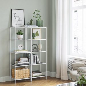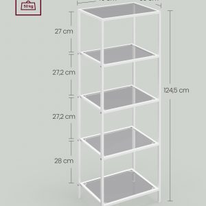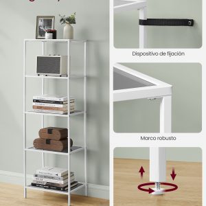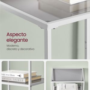 Estantería de vidrio de 5 niveles, blanco perla y gris