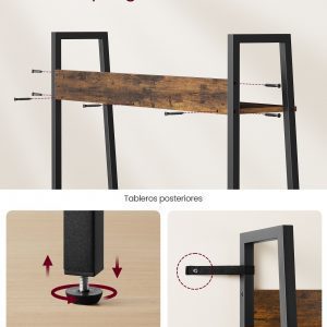 Estable y Segura: Equipado con tableros posteriores de 6,8 cm de altura, este mueble asegura que los objetos no se caigan. Los pies ajustables permiten que la estantería se mantenga estable incluso en suelos irregulares, y el dispositivo de fijación incluido evita que la estantería se vuelque, garantizando un entorno seguro.