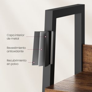 Elegante y Versátil: Los tableros en negro ébano, adornados con elegantes vetas de madera, y su estructura de acero crean un diseño sofisticado que se adapta a cualquier espacio, ya sea en la oficina, el salón, el dormitorio o la cocina. Esta estantería es una adición elegante que complementa cualquier estilo de decoración.