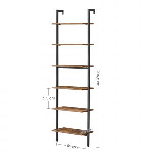 Estantería escalera de pared con 6 estantes, marrón rústico