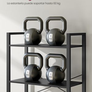 - Construcción Robusta: Fabricada con tableros de aglomerado de alta calidad y un marco de acero sólido, esta estantería está diseñada para soportar el paso del tiempo. Con una capacidad de carga de hasta 10 kg por estante, es ideal para sostener desde libros y plantas hasta reliquias familiares.