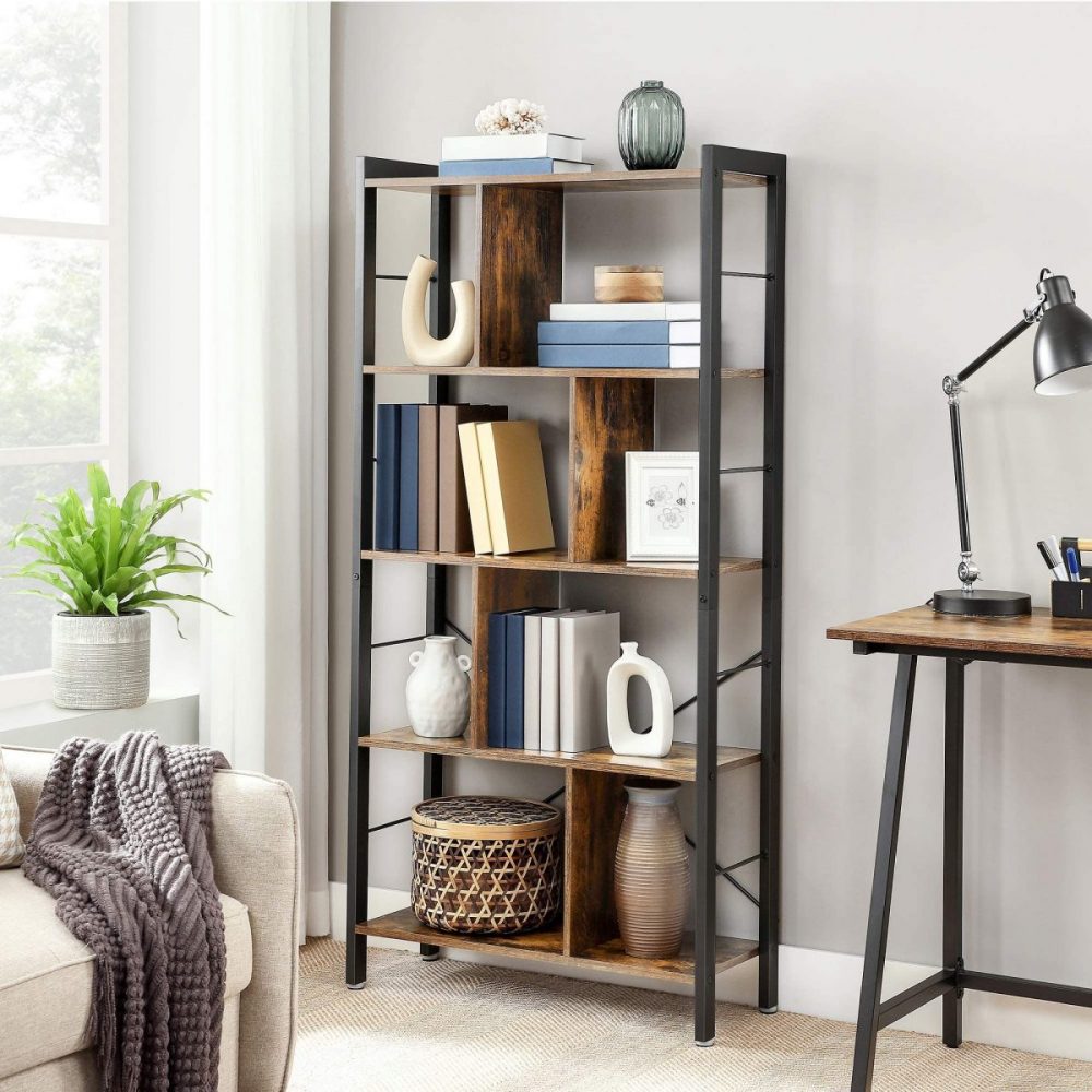 Estantería industrial de 4 niveles, montaje sencillo, marrón