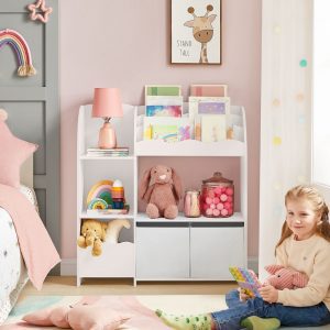 Más que una Simple Estantería: Ideal para el cuarto de los niños, cuarto de juegos, dormitorio, salón o incluso el pasillo. Su diseño elegante y color neutro se integran perfectamente en cualquier decoración, manteniendo ordenado el entorno de juego y estudio de tus hijos.
