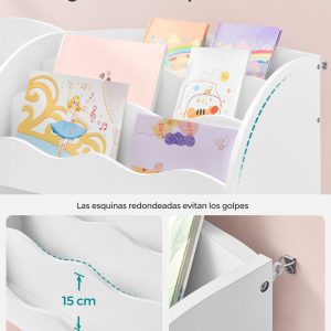 Diseñada pensando en los Niños: Las esquinas redondeadas minimizan los riesgos de golpes, mientras que el dispositivo de fijación incluido garantiza que la estantería se mantenga firme y segura en cualquier espacio.