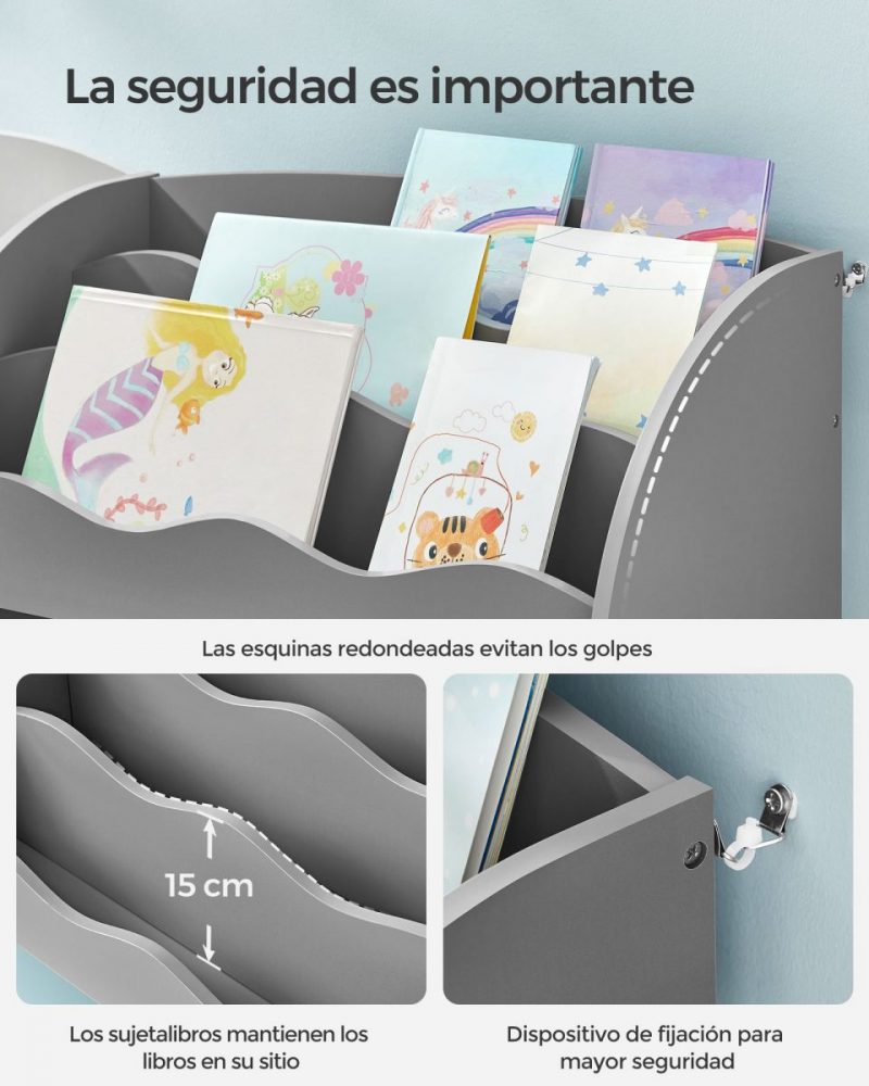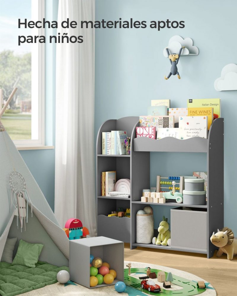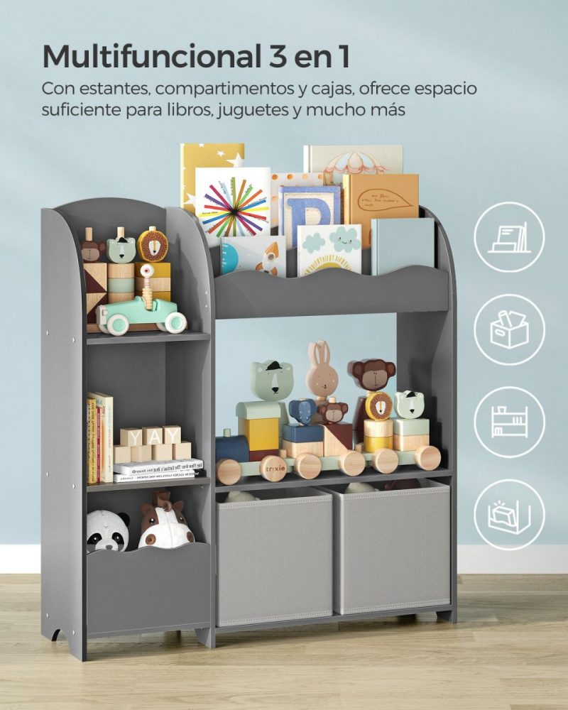 Estantería infantil multifuncional, organiza juguetes y libros, gris