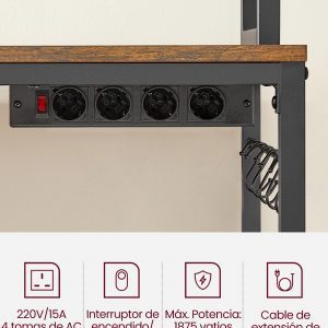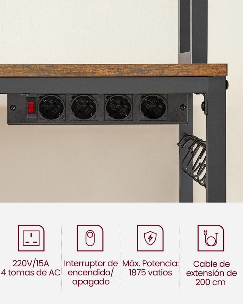 La regleta tiene 4 tomas de AC para que pueda enchufar varios electrodomésticos y admite hasta 1875 vatios. El diseño integrado mantiene todos los cables bien ocultos en los estantes para un aspecto ordenado.