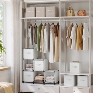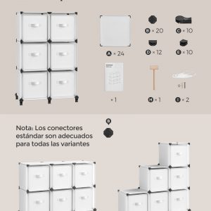 - Estructura Robusta: Fabricado con paneles de PP reforzados por marcos metálicos y unidos por conectores de ABS, cada compartimento soporta hasta 10 kg, mientras que las cajas de almacenamiento, hechas de tela no tejida de 80 g/㎡ y cartón de 2 mm, aguantan hasta 5 kg.