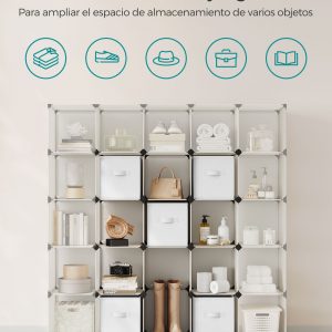 Nuestro armario organizador modular de 6 compartimentos y 6 cajas es la solución ideal para quienes buscan mantener sus espacios ordenados sin sacrificar el estilo. Diseñado para ofrecer una organización eficiente y accesible, este sistema modular no solo facilita la clasificación de tus pertenencias, sino que también las mantiene ocultas y protegidas, listas para ser encontradas cuando las necesites.