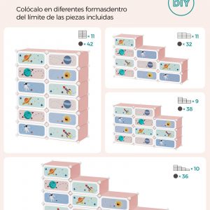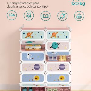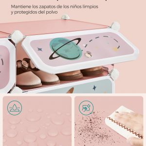 Este zapatero no es solo un mueble, sino una herramienta educativa que alienta a los niños a mantener sus zapatos organizados y accesibles. Decorado con cohetes, astronautas y planetas, este organizador inspira la maravilla del espacio exterior y ofrece suficiente espacio para almacenar hasta 24 pares de zapatos.