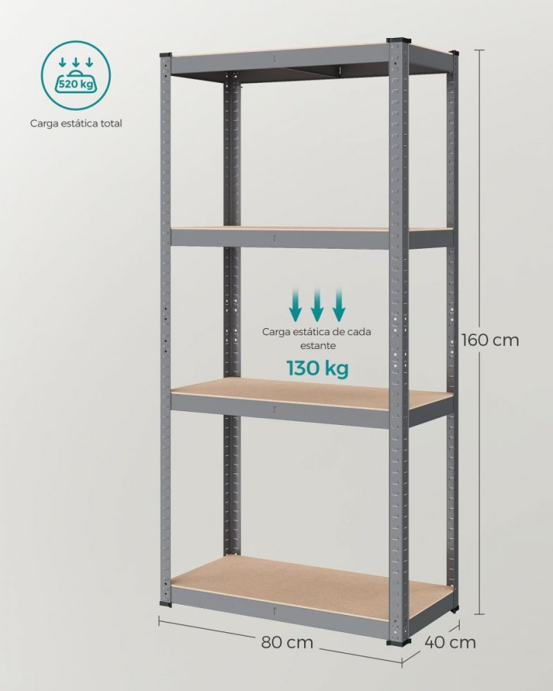 Máx. capacidad de carga estática de cada estante: 130 kg