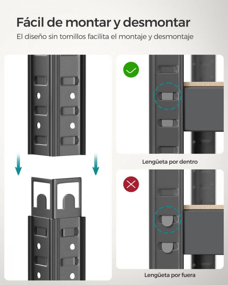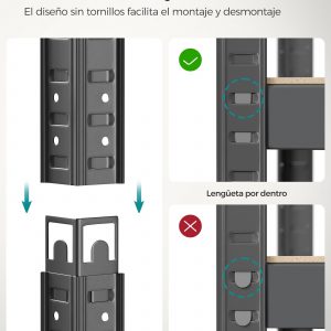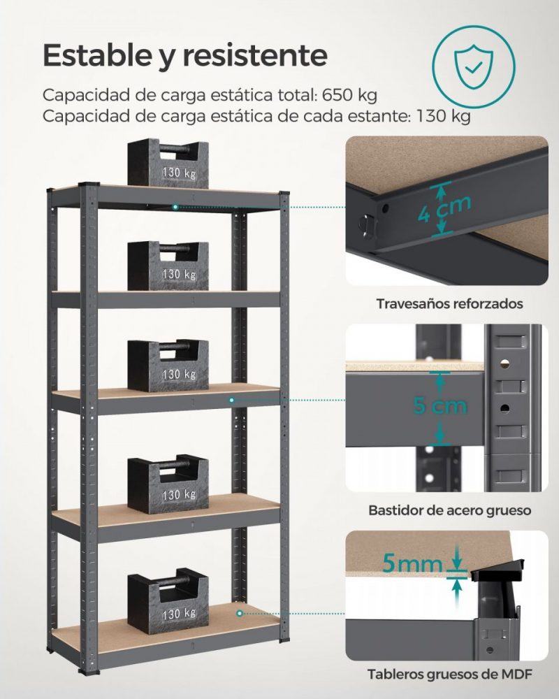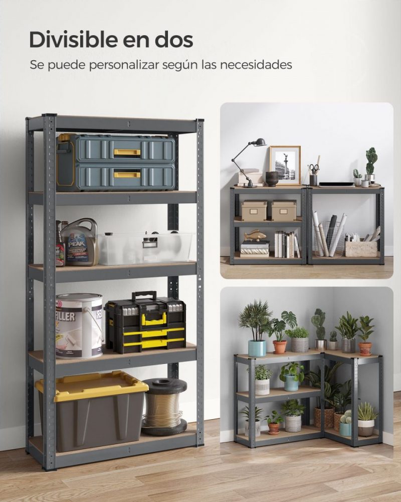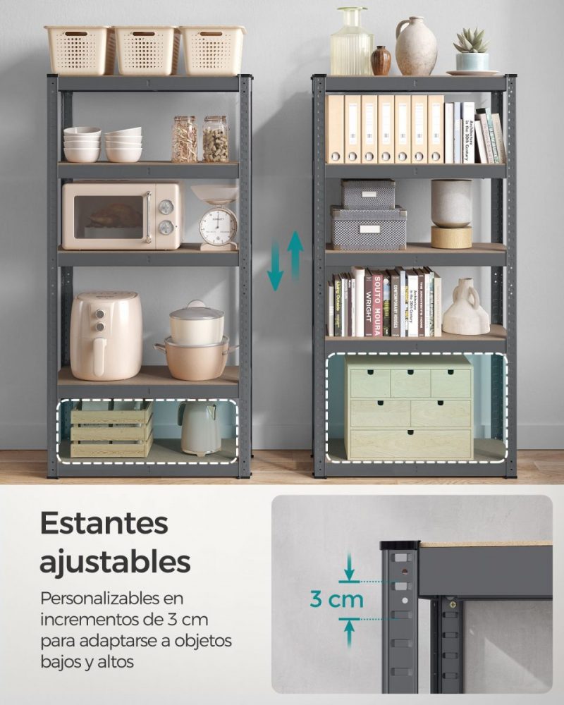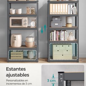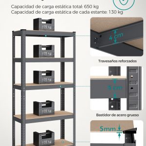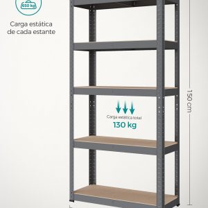 Estantería pesada de 5 niveles 30x75x150 cm gris y natural