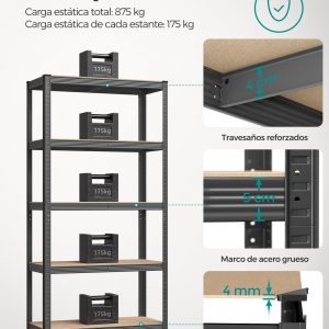 Máx. capacidad de carga estática de cada estante: 175 kg