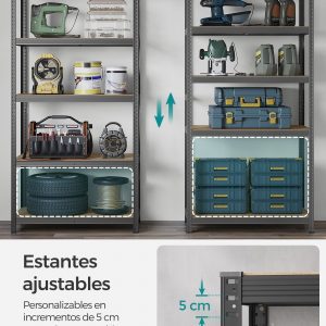 Versatilidad de Almacenamiento: Con estantes ajustables en altura, puedes organizar fácilmente artículos grandes y pequeños, desde neumáticos hasta grandes cubos de pintura.