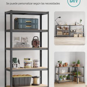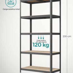 Construcción Resistente: La combinación de madera de ingeniería y acero reforzado asegura que cada estante puede soportar hasta 175 kg.