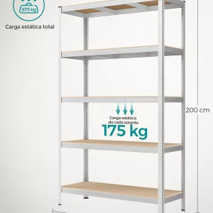 Gran Tamaño y Capacidad de Carga: Con unas dimensiones de 60 x 120 x 200 cm y una capacidad de carga total de 875 kg, esta estantería es perfecta para organizar todas tus herramientas y equipos, desde pequeños accesorios hasta equipos pesados.