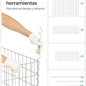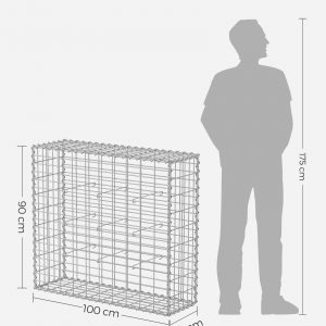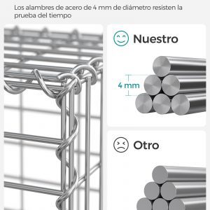 Detalles: Dimensiones: GGB193: 100 × 90 × 30 cm, Malla: 10 x 5 cm, Alambre: Ø 4 mm, Material: Alambre de acero galvanizado (Resistente a la corrosión), Color: Gris; Plateado