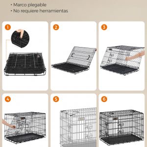 Seguro y Cómodo: Esta jaula para perros está hecha de alambre metálico resistente y duradero, garantizando un entorno seguro sin bordes afilados. Además, es resistente al moho, lo que asegura que tu perro esté cómodo y protegido en todo momento.