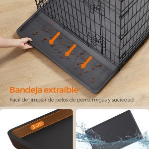 Proporciona a tu perro un lugar seguro y cómodo con nuestra Jaula para Perros XXL. Diseñada para perros grandes, esta jaula está fabricada con alambre metálico duradero, resistente al moho y con una superficie lisa sin bordes afilados. Es el espacio perfecto para que tu mascota se sienta segura y cómoda en todo momento.