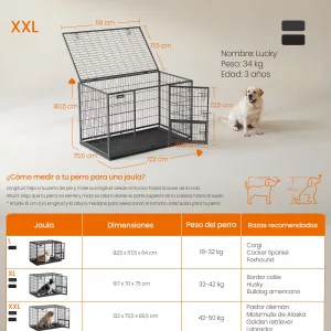 Jaula Pesada para Perros 122×75,5×80,5 cm XXL Gris