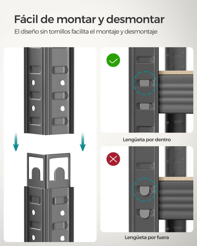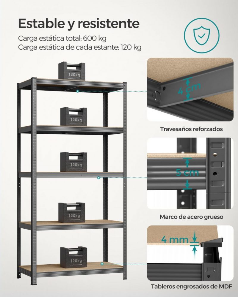 Peso de cada estantería: 16,8 kg