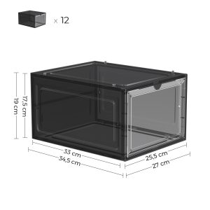 Dile adiós a los zapatos dispersos y da la bienvenida a una organización impecable con nuestro juego de 12 cajas de zapatos. Diseñadas pensando en la conveniencia y el estilo, estas cajas son la solución perfecta para aquellos que desean mantener su colección de calzado ordenada, accesible y protegida. Con espacio suficiente para zapatos hasta la talla 45, estas cajas se adaptan a casi cualquier tipo de calzado, desde zapatillas deportivas hasta elegantes zapatos de tacón.