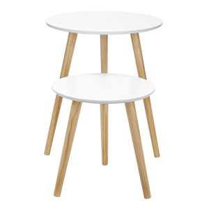 Incorpora la serenidad y el estilo escandinavo a tu hogar con nuestro conjunto de mesas auxiliares. La combinación perfecta de colores naturales y blanco satinado añade un toque elegante y acogedor a cualquier espacio, creando un ambiente relajante que invita a disfrutar de cada momento en casa.