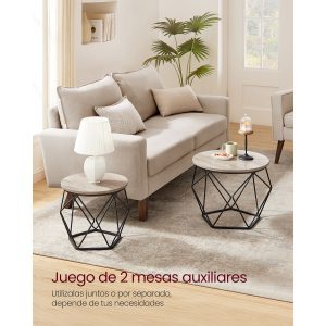 Estas mesas de centro ofrecen versatilidad. Úsalas juntas para una mezcla armoniosa en el salón o sepáralas, colocando una junto al sofá y la otra en el dormitorio. Su diseño versátil se adapta a cualquier situación.