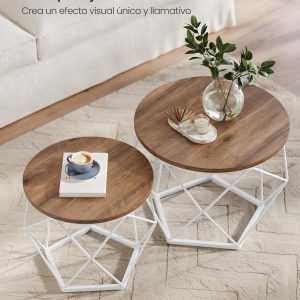 Estas mesas de centro ofrecen versatilidad. Úsalas juntas para una mezcla armoniosa en el salón o sepáralas, colocando una junto al sofá y la otra en el dormitorio. Su diseño versátil se adapta a cualquier situación.