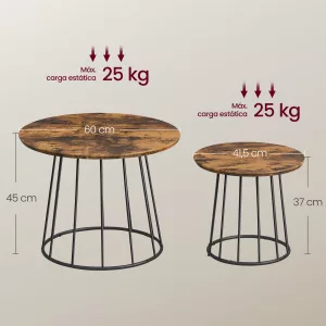 Tamaños Prácticos: La mesa de centro grande mide 60 x 45 cm (Diámetro x Altura) y la mesa pequeña mide 41,5 x 37 cm (Diámetro x Altura). Estas dos mesas te ofrecen el espacio ideal para colocar café, decoraciones o incluso tu portátil mientras trabajas desde la comodidad de tu hogar.