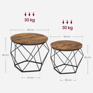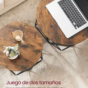 Medidas Prácticas: La mesa grande mide 60 x 45 cm y la mesa pequeña mide 50 x 40 cm, lo que las hace ideales para espacios reducidos. Puedes utilizarlas como mesas de café, para servir aperitivos, o incluso como soporte para trabajar con tu portátil.