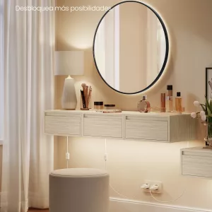 Espejo joyero con luz led, organizador montado en pared o puerta