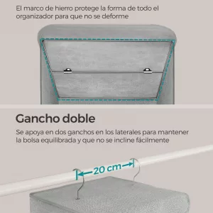 Buena Estabilidad: Equipado con 2 ganchos y un marco de hierro en la parte superior, este organizador colgante es estable y no se inclina, manteniéndose firme y recto para un uso confiable.