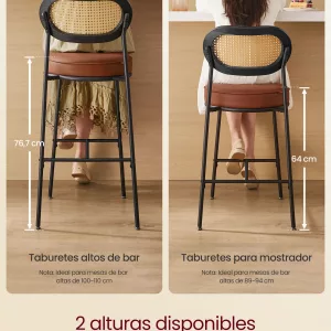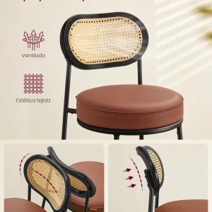 Estos taburetes de bar no solo proporcionan un asiento cómodo y estable, sino que también añaden un toque de estilo y elegancia a tu cocina, bar o comedor. Su diseño boho chic y ergonomía avanzada los hacen perfectos para cualquier espacio moderno y acogedor.