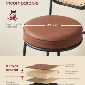 Asiento Suave y Acogedor: Con una alta densidad de 8 cm de espesor y 42,1 cm de diámetro, el cojín acolchado envuelto en piel sintética de calidad ofrece una comodidad excepcional.