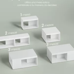 Customiza tu mesa de café: Incluye tres mesas pequeñas rectangulares que se pueden usar individualmente o combinar para formar una mesa más grande, adaptándose a diversas necesidades.