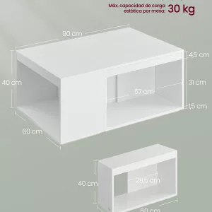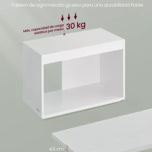 Robustas y estables: Fabricadas con tableros de aglomerado de 4,6 cm de espesor, cada mesa ofrece una excelente estabilidad y durabilidad, soportando hasta 30 kg y mejorando tu espacio vital con una adición fiable.