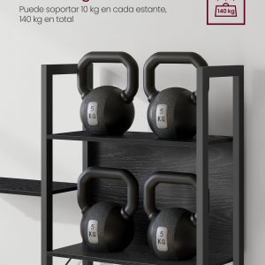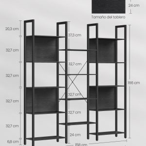 El acero resistente y el tablero de aglomerado duradero crean un marco estable, reforzado por barras en X en la parte posterior. Esta librería puede soportar hasta 10 kg en cada estante, con una capacidad total de 140 kg.