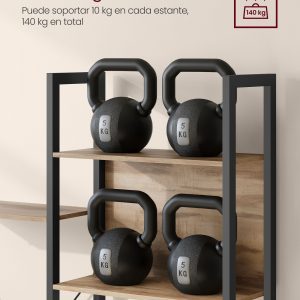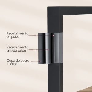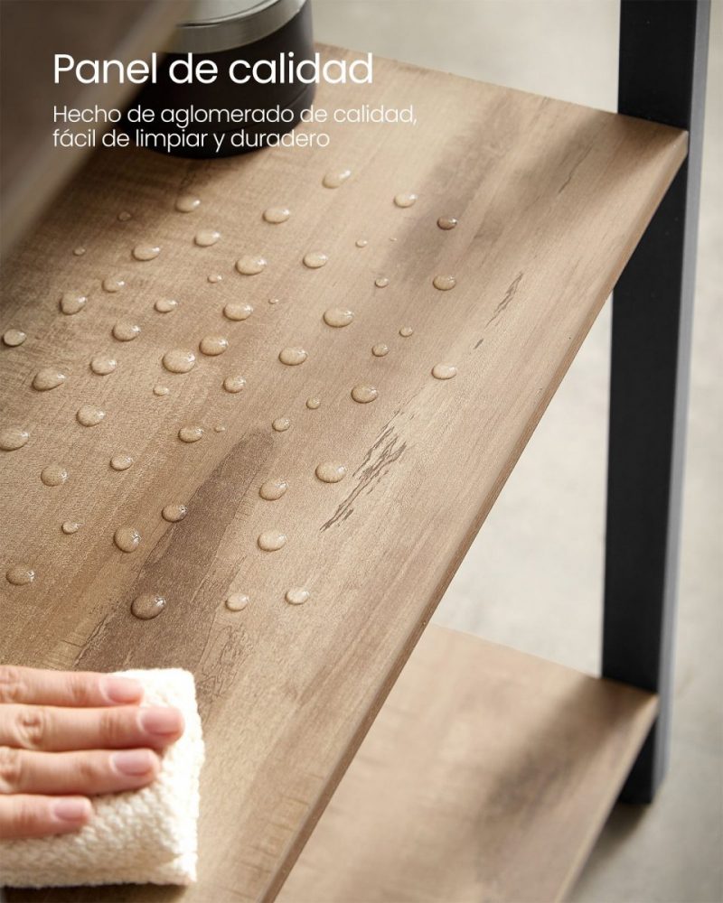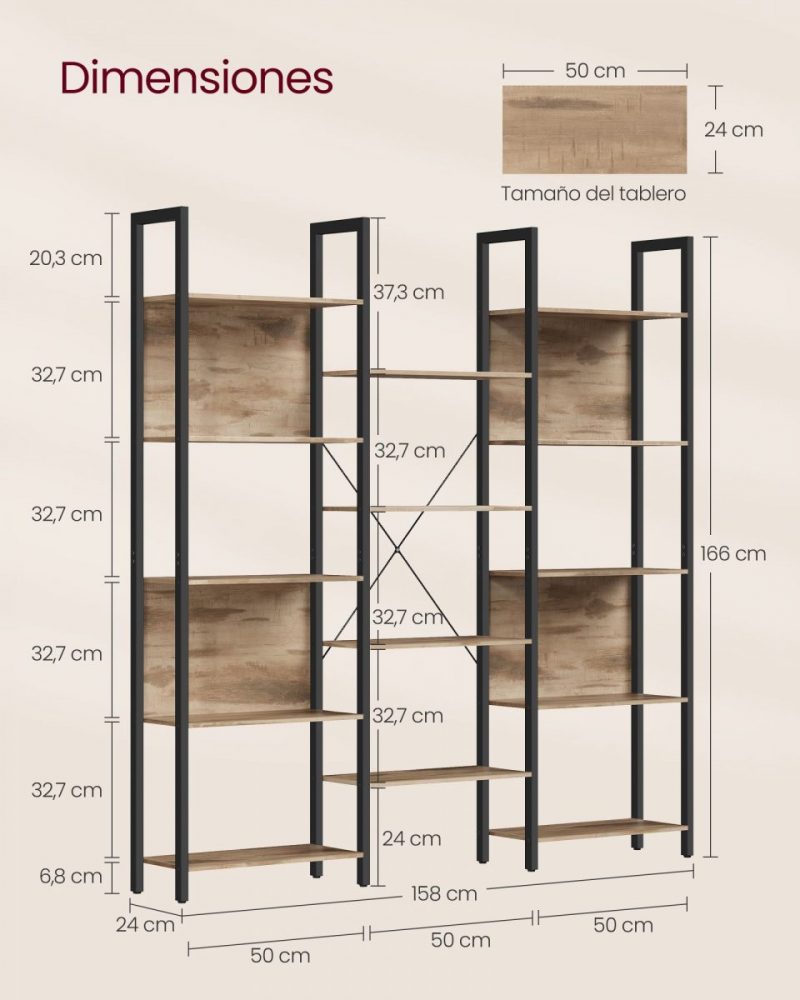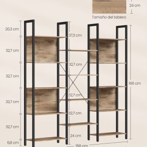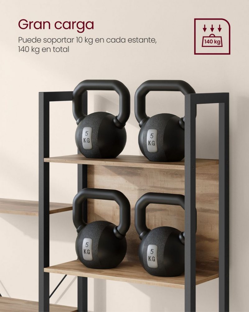 El acero resistente y el tablero de aglomerado duradero crean un marco estable, reforzado por barras en X en la parte posterior. Esta librería puede soportar hasta 10 kg en cada estante, con una capacidad total de 140 kg.