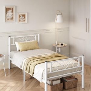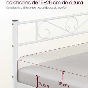 Marco de cama de metal blanco 90×190 cm – montaje fácil