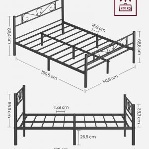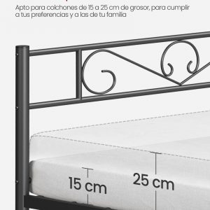 Estabilidad Superior: Construido con barras de metal de alta calidad y soportado por seis robustas patas de metal y juntas en U, este marco de cama garantiza una base sólida que soporta hasta 250 kg sin tambalearse ni emitir ruidos.