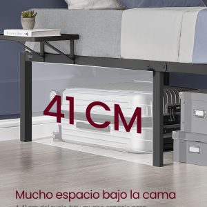 Mucho Espacio Debajo de la Cama: Con una distancia de 41 cm entre el suelo y la viga de soporte, puedes utilizar el espacio debajo de la cama para almacenar cajas y otros artículos. Además, el diseño permite que el robot aspirador pase fácilmente, haciendo que la limpieza sea un proceso sin complicaciones.