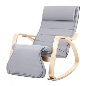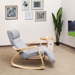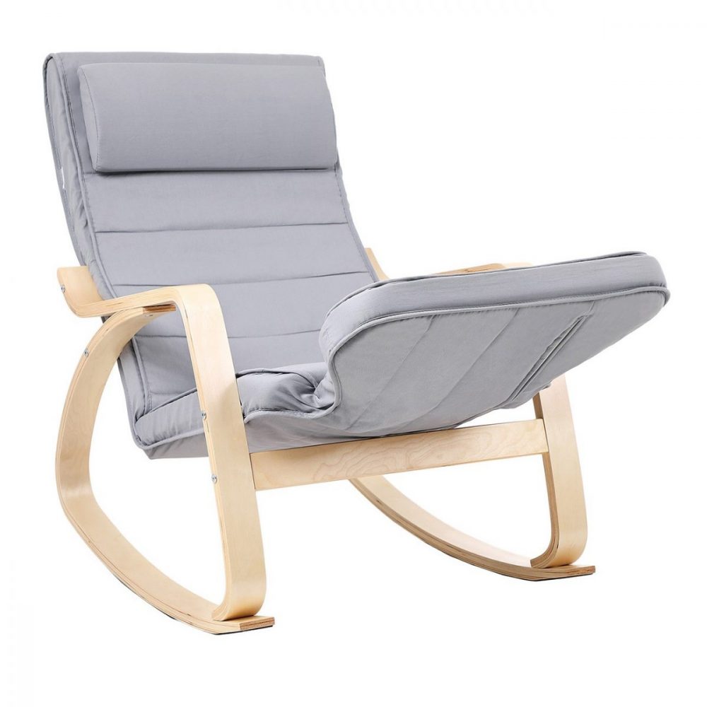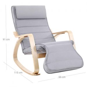 Mecedora de abedul con reposapiés, gris claro
