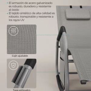 Mecedora Silla Tumbona con Cojín Ajustable Gris Paloma