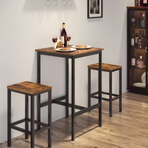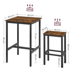 Diseño Ahorrador de Espacio: Con medidas de 60 x 60 x 90 cm para la mesa y 30 x 40 x 65 cm para cada taburete, este conjunto es ideal para espacios reducidos. Además, puedes guardar los taburetes debajo de la mesa para maximizar el espacio cuando no los uses.