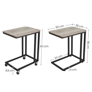 Con un marco de acero robusto y tablero de aglomerado de alta calidad, esta mesa móvil no solo destaca por su apariencia sino también por su notable durabilidad y capacidad de carga de hasta 25 kg. Perfecta para combinar con cualquier decoración interior, es la pieza que falta en tu hogar moderno.