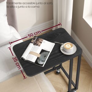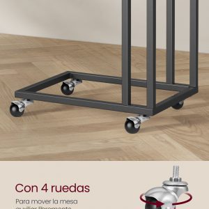 Con un marco de acero robusto y tablero de aglomerado de alta calidad, esta mesa móvil no solo destaca por su apariencia sino también por su notable durabilidad y capacidad de carga de hasta 25 kg. Perfecta para combinar con cualquier decoración interior, es la pieza que falta en tu hogar moderno.